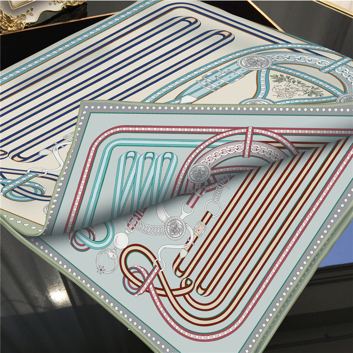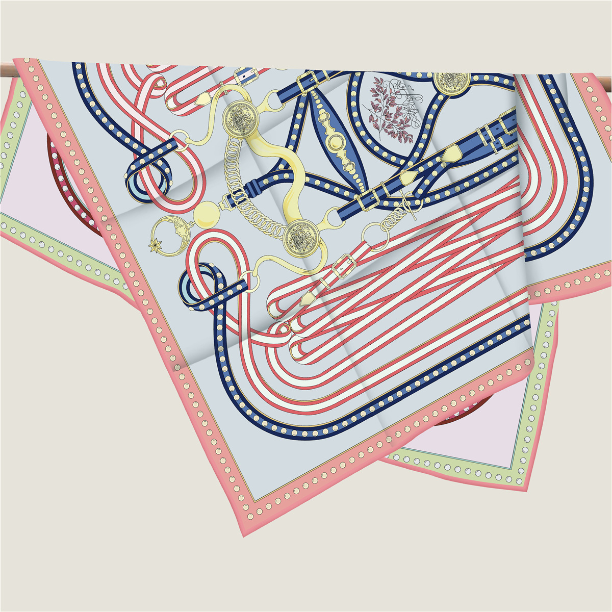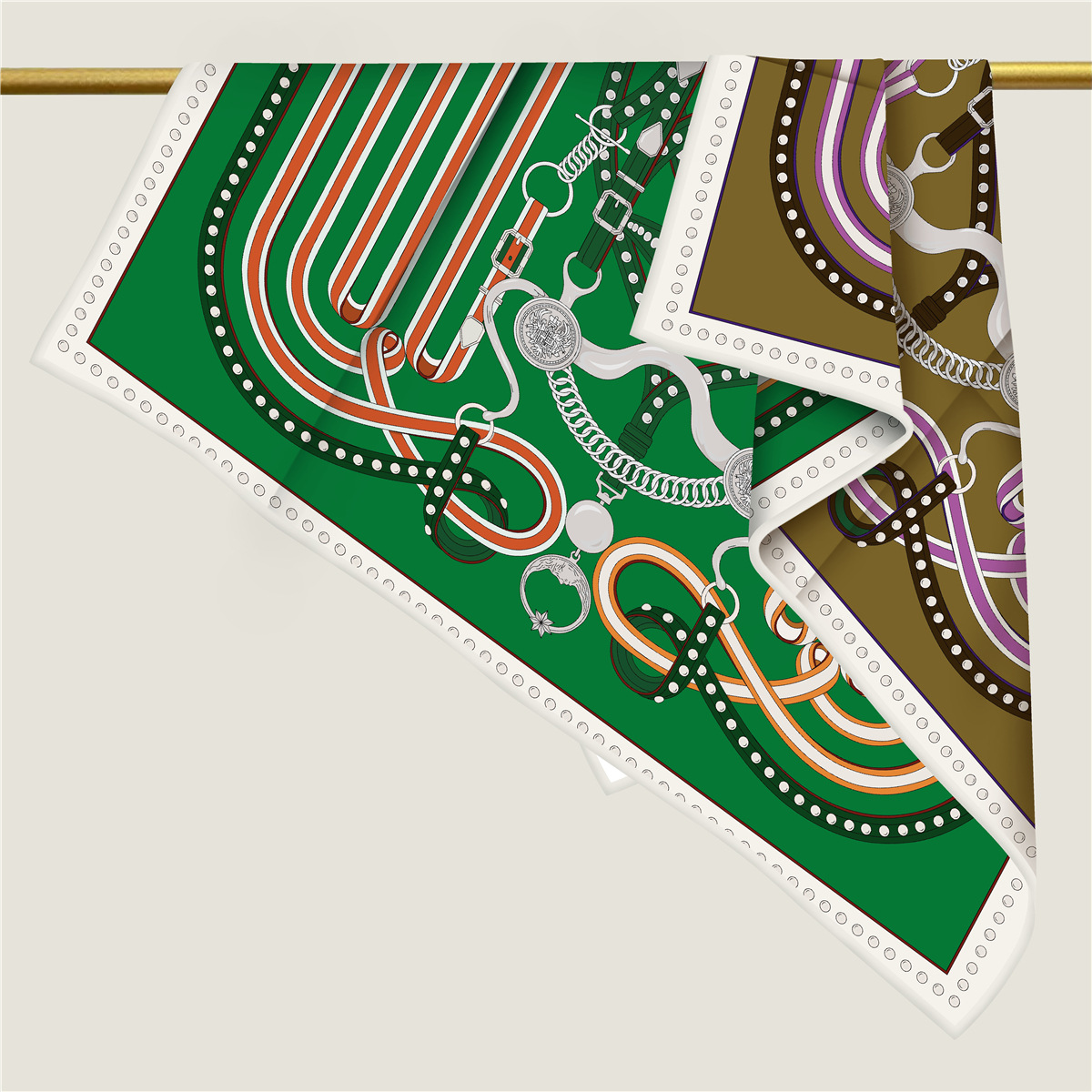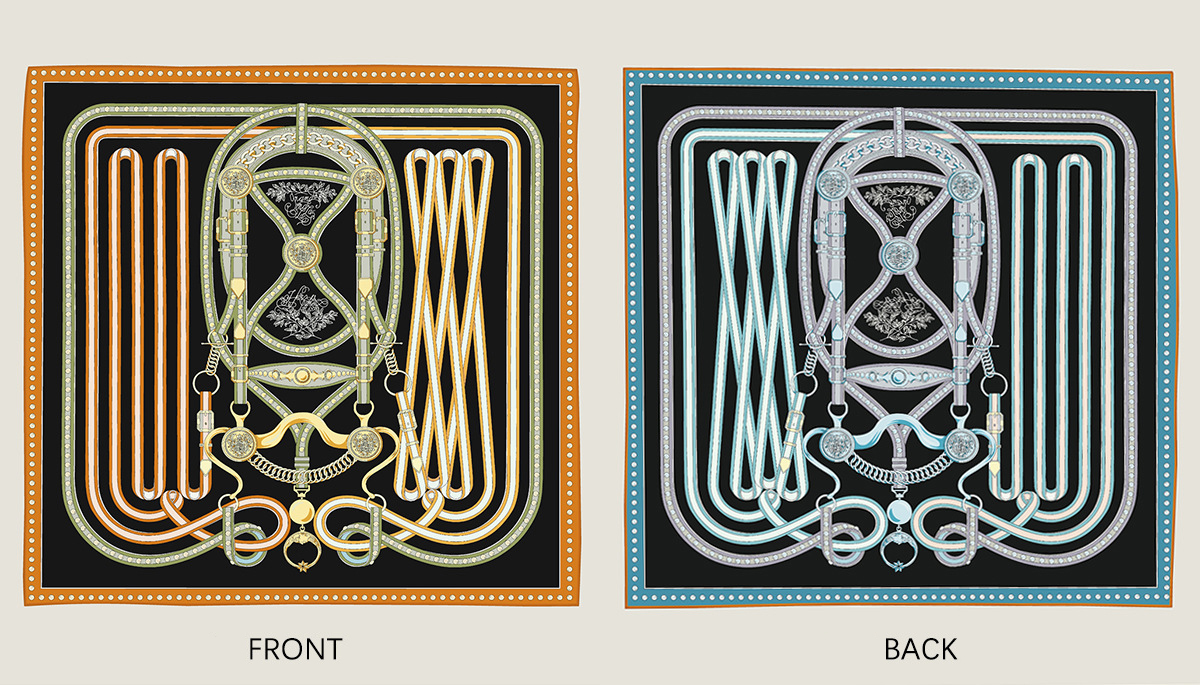 French belt chain double-sided patterned silk scarf