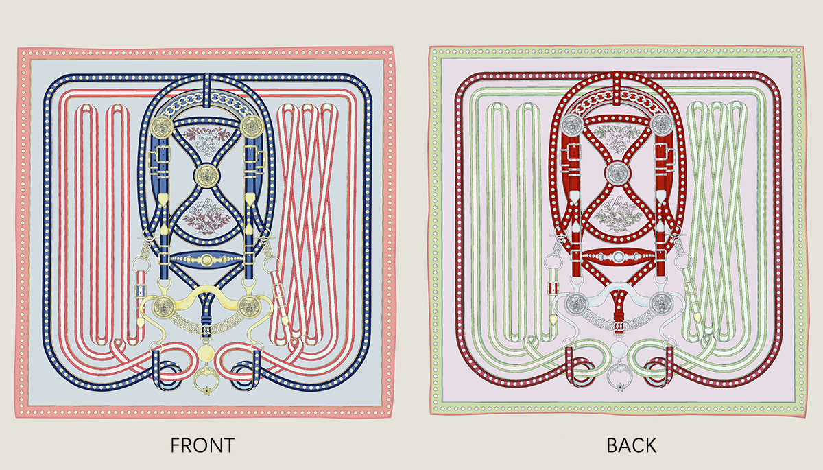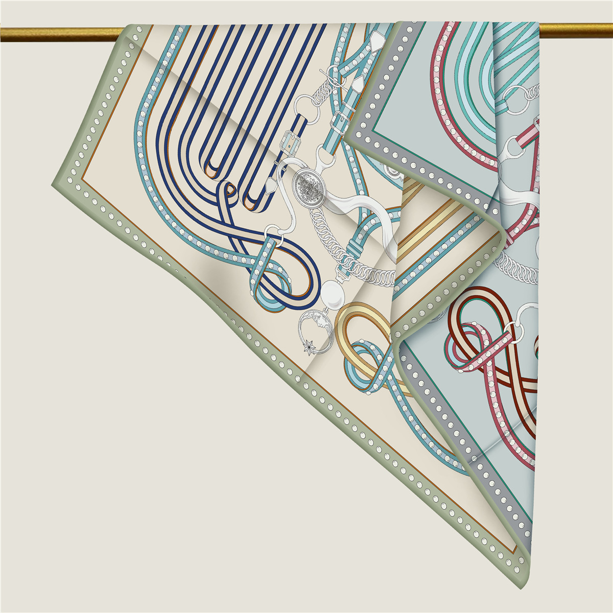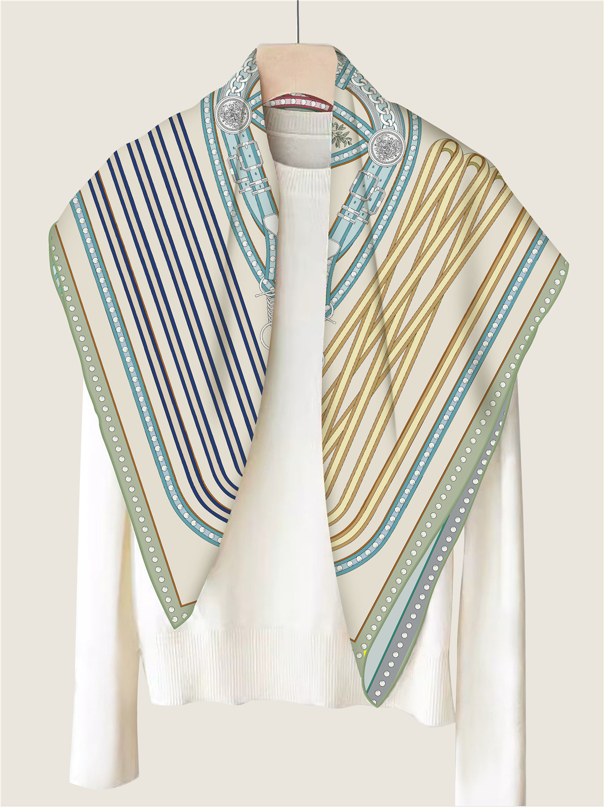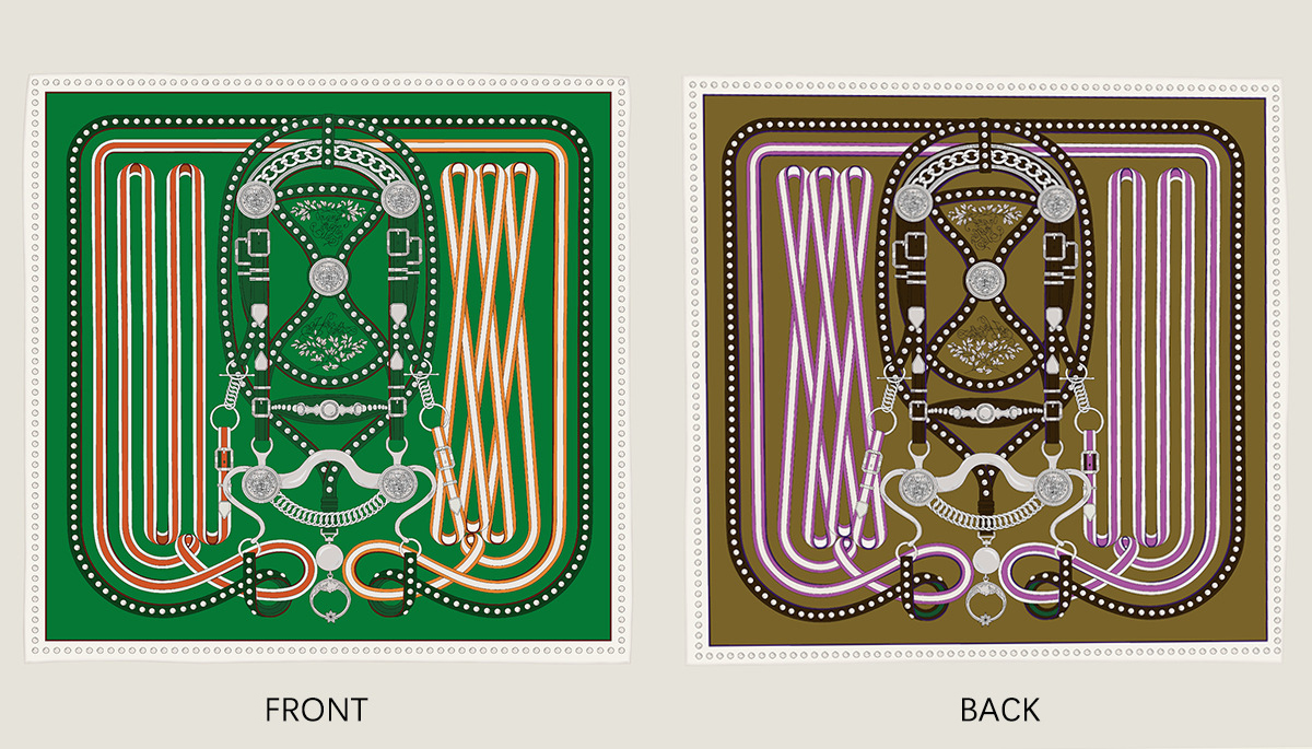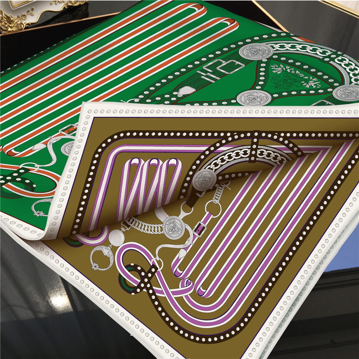 French belt chain double-sided patterned silk scarf