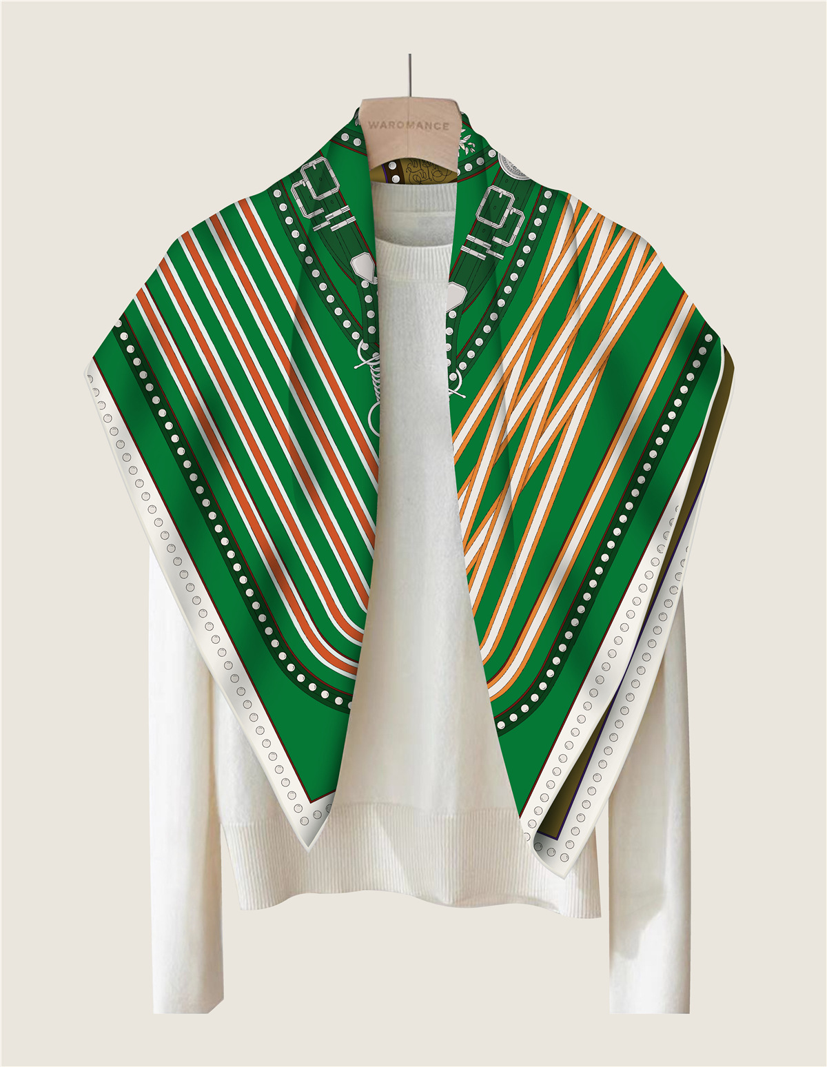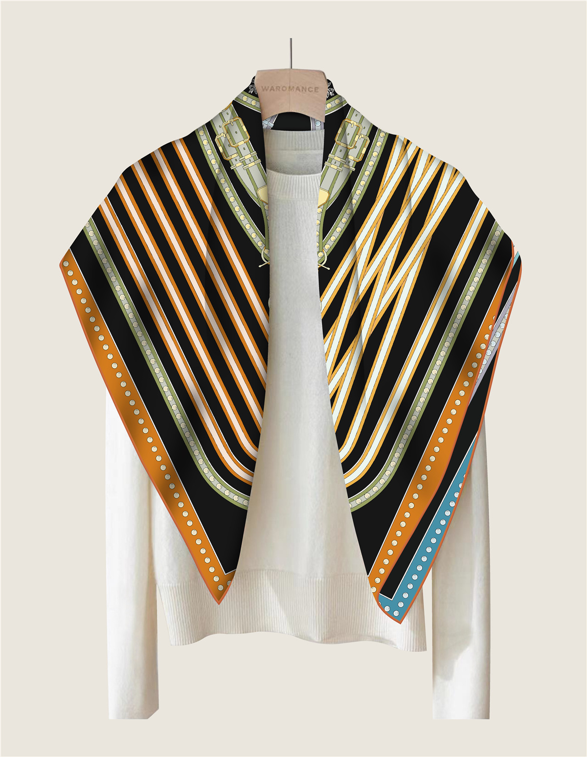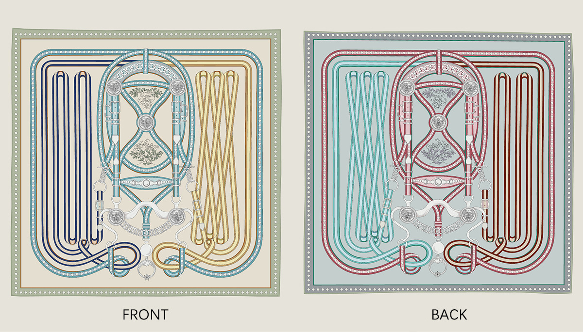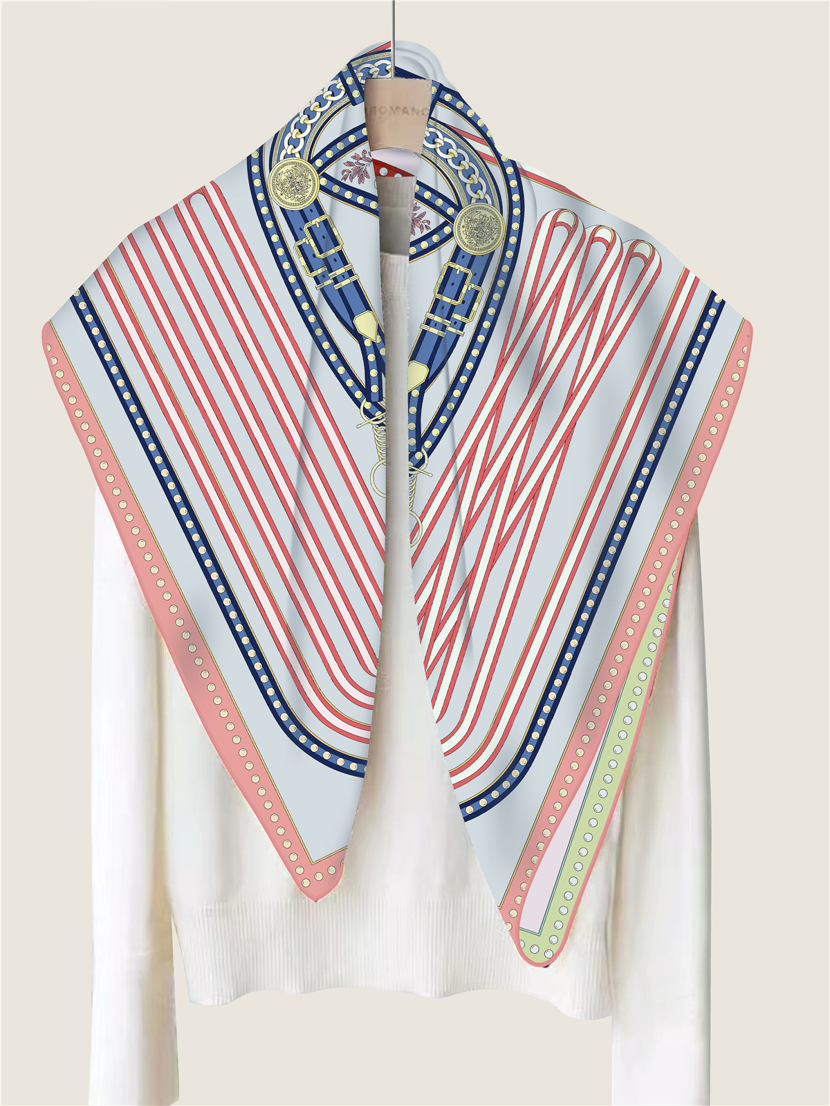 French belt chain double-sided patterned silk scarf