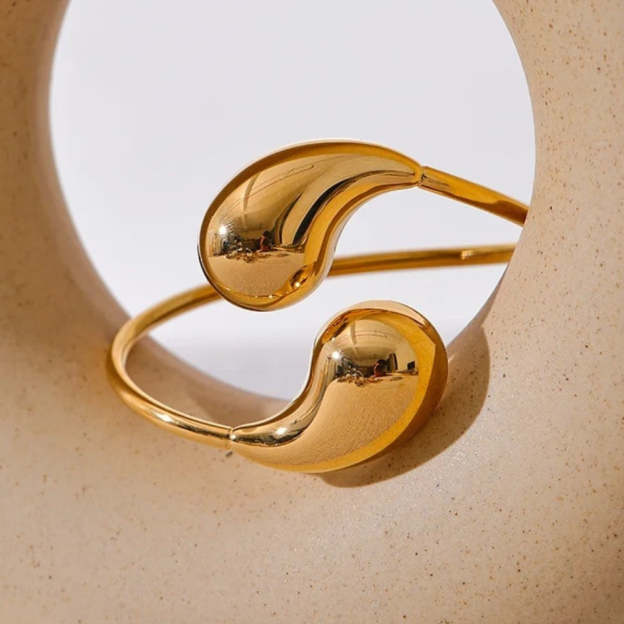 Gold Abstract Drop Cuff Adjustable Bracelet