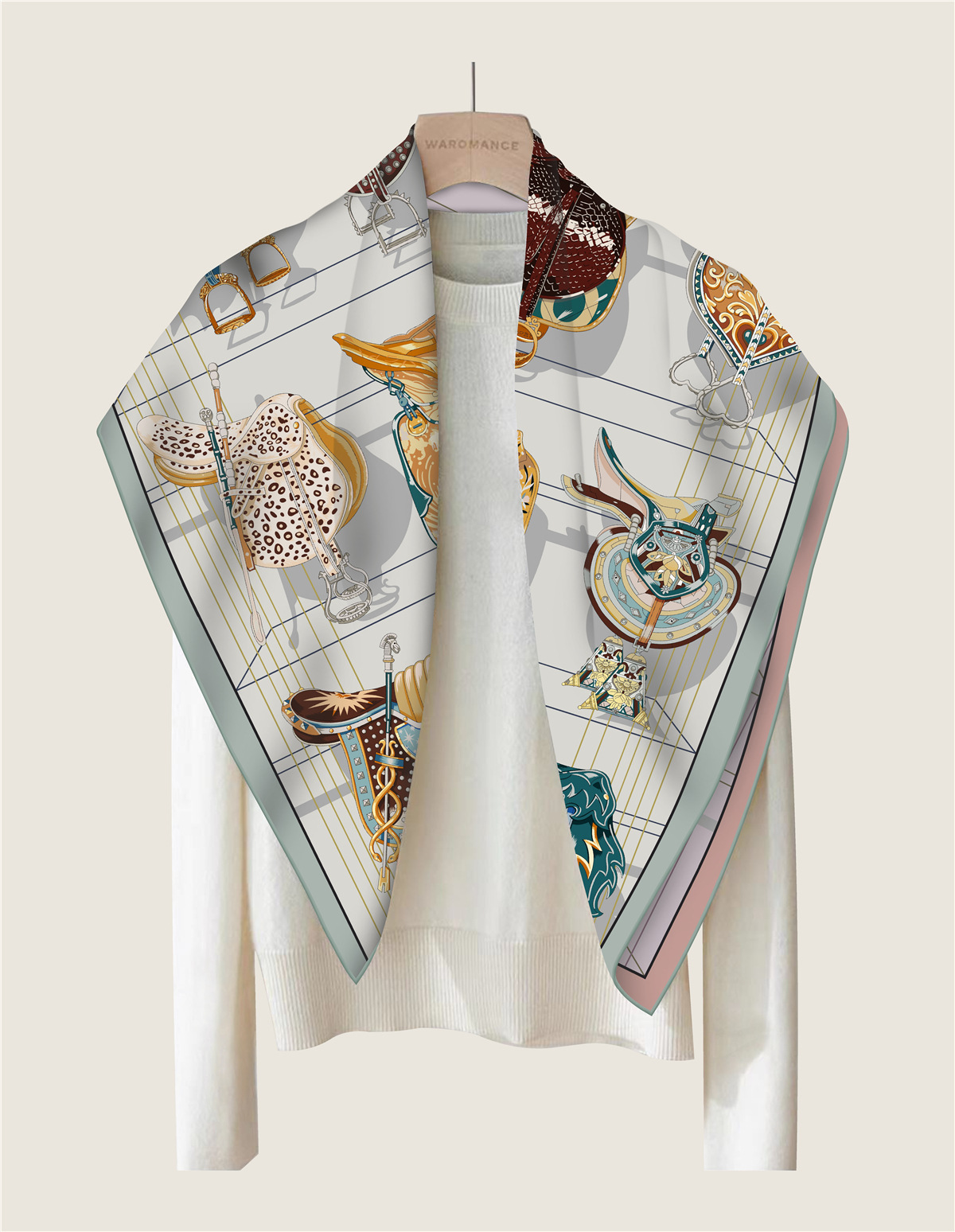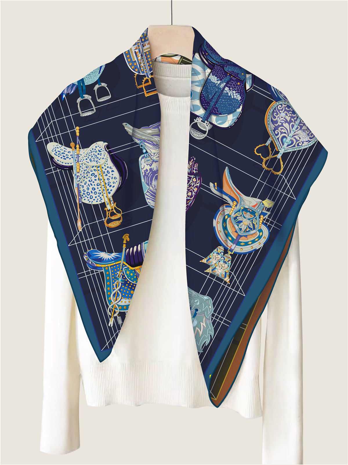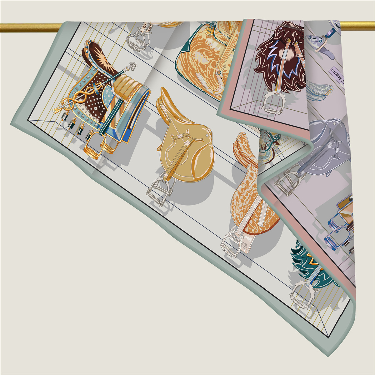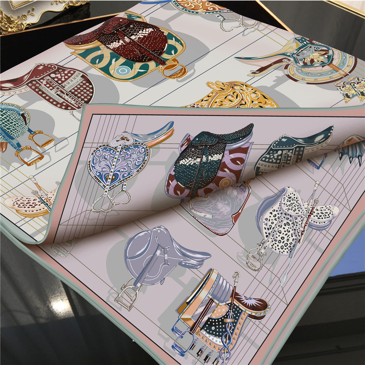 Saddle chain double-sided pattern silk scarf