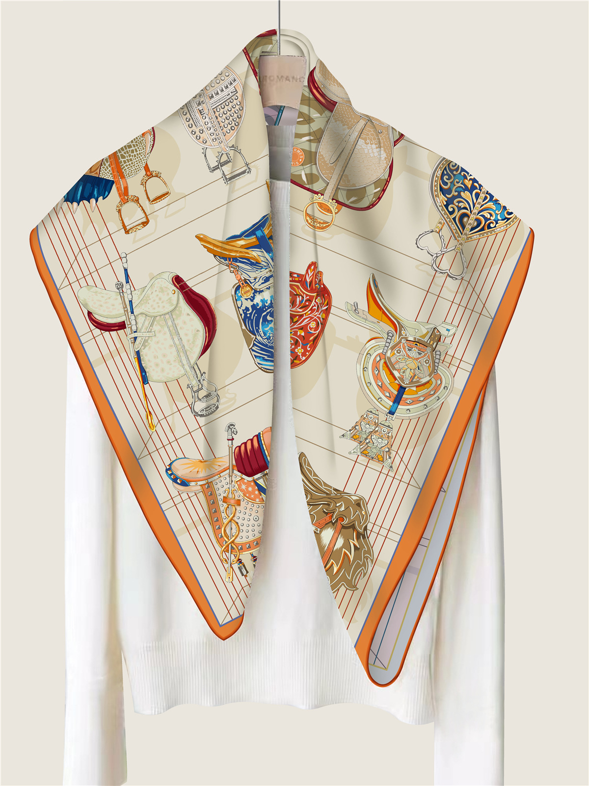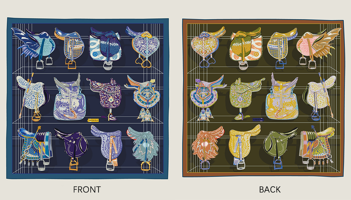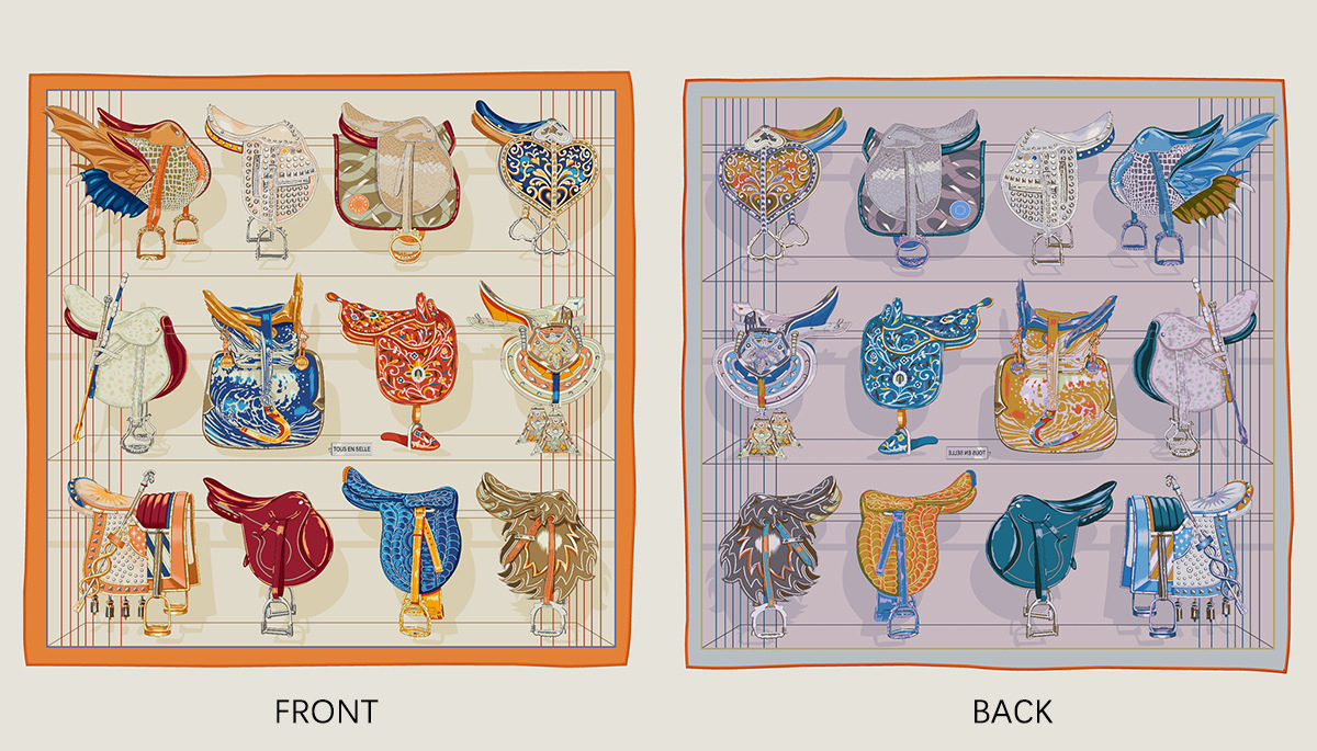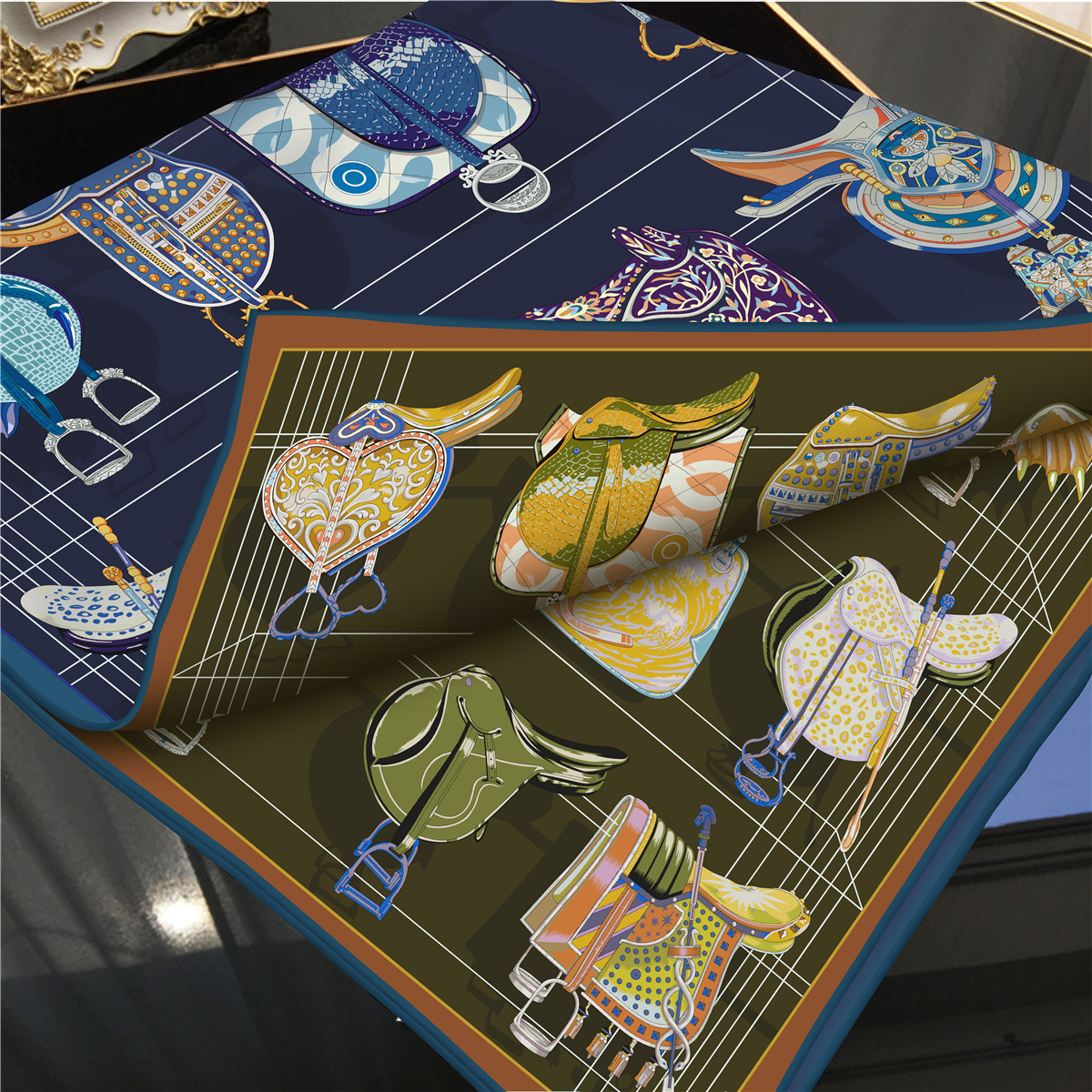 Saddle chain double-sided pattern silk scarf