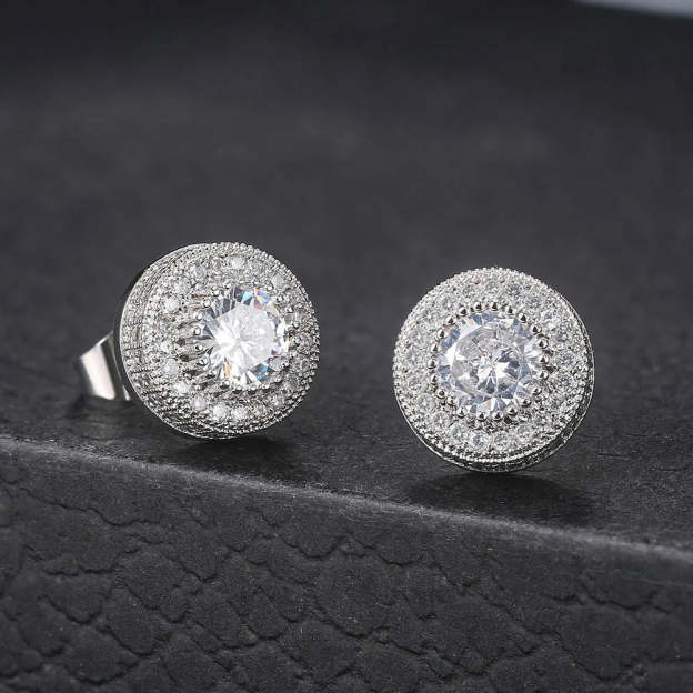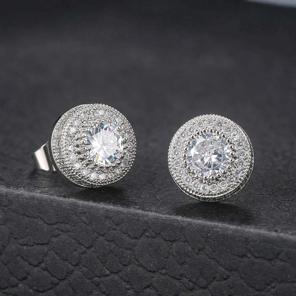 Timeless Silver Crystal-Accented Round Stud Earrings