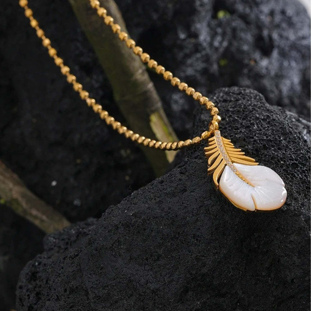Vintage Gold Leafy Shell Drop Necklace
