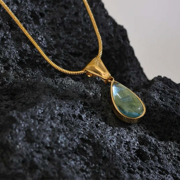 Vintage Green Glass Crystal Water Drop Pendant Necklace